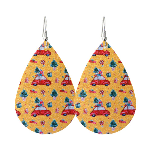 Yellow Christmas Car Pattern Earrings