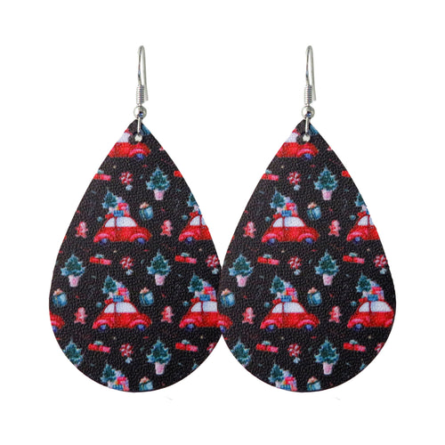 Black Christmas Car Pattern Earrings