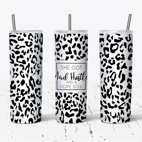 Black and White Leopard Mad Hustle & Dope Soul Tumbler w/ Lid & Straw