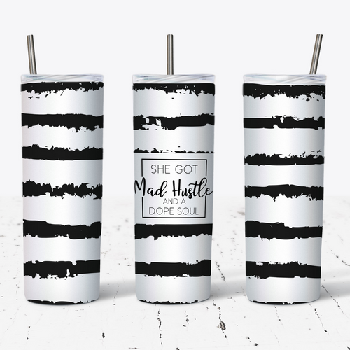 Black and White Stripe Mad Hustle & Dope Soul Tumbler w/ Lid & Straw