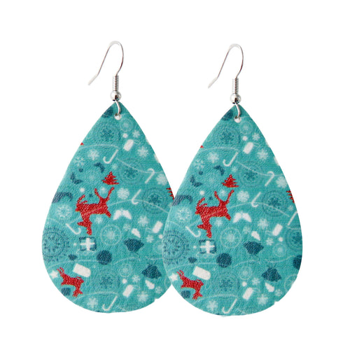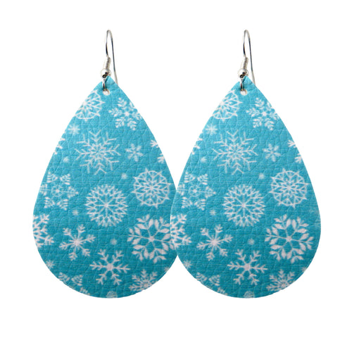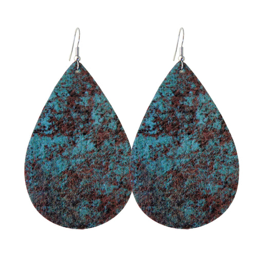 Blue Camo Print Textured Tear Drop Leather Earrings