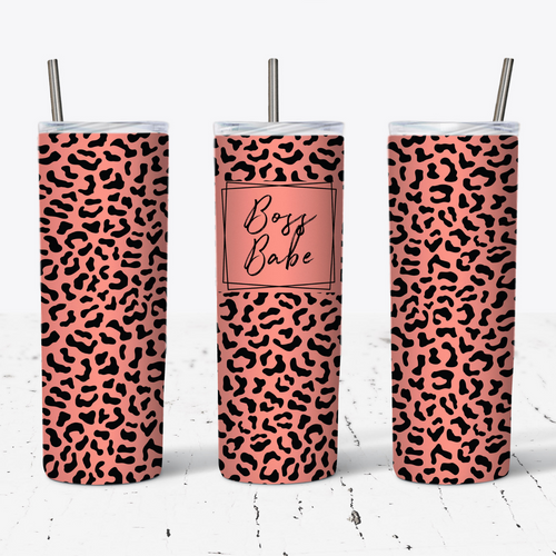 Copper and Black Leopard Boss Babe Tumbler w/ Lid & Straw