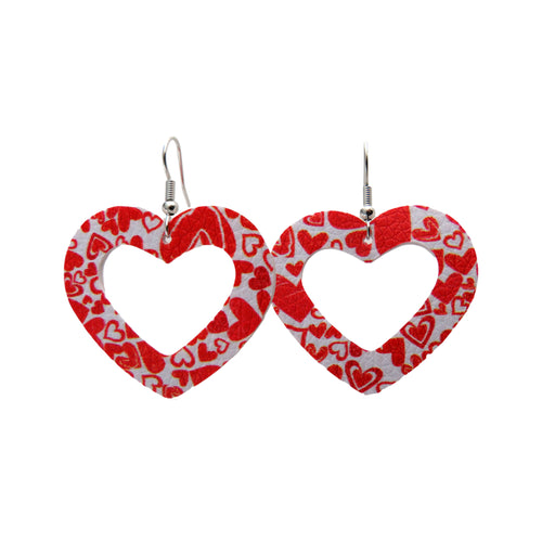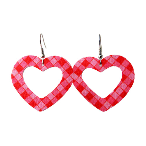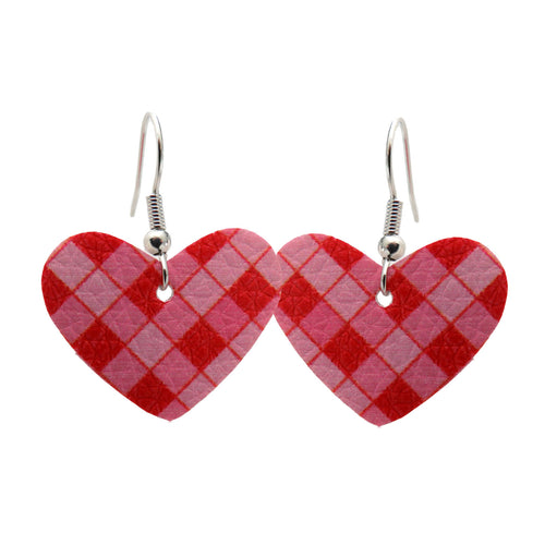 Pink & Black Buffalo Plaid Long Heart Earrings